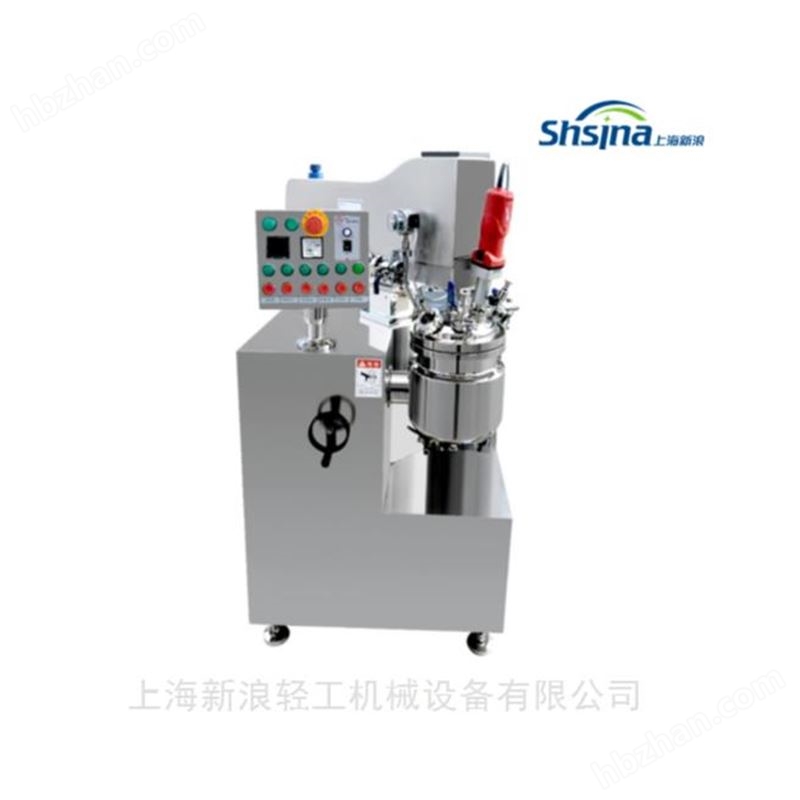 SXL系列新浪真空乳化機 醫用凝膠真空均質乳化鍋由乳化鍋(可升降鍋蓋、翻轉式鍋體)水鍋、油鍋、真空裝置、加熱及溫度控制系統、冷卻系統、電器控制系統等組成。原料在水鍋、油鍋內通過預熱、攪拌進行混合反應后,由CBI分散系統在無外部動力情況下產生的高速離心力同時吸入均質工作腔體,在定轉子高速作用下所有物料瞬間被剪切、分散,再由乳化鍋上部雙向攪拌槳混合均勻;再通過內外循環管路流回罐里,繼續混合、剪切,也可以通過切換管路閥門來調節循環路徑的長短,從而控制批次流量;